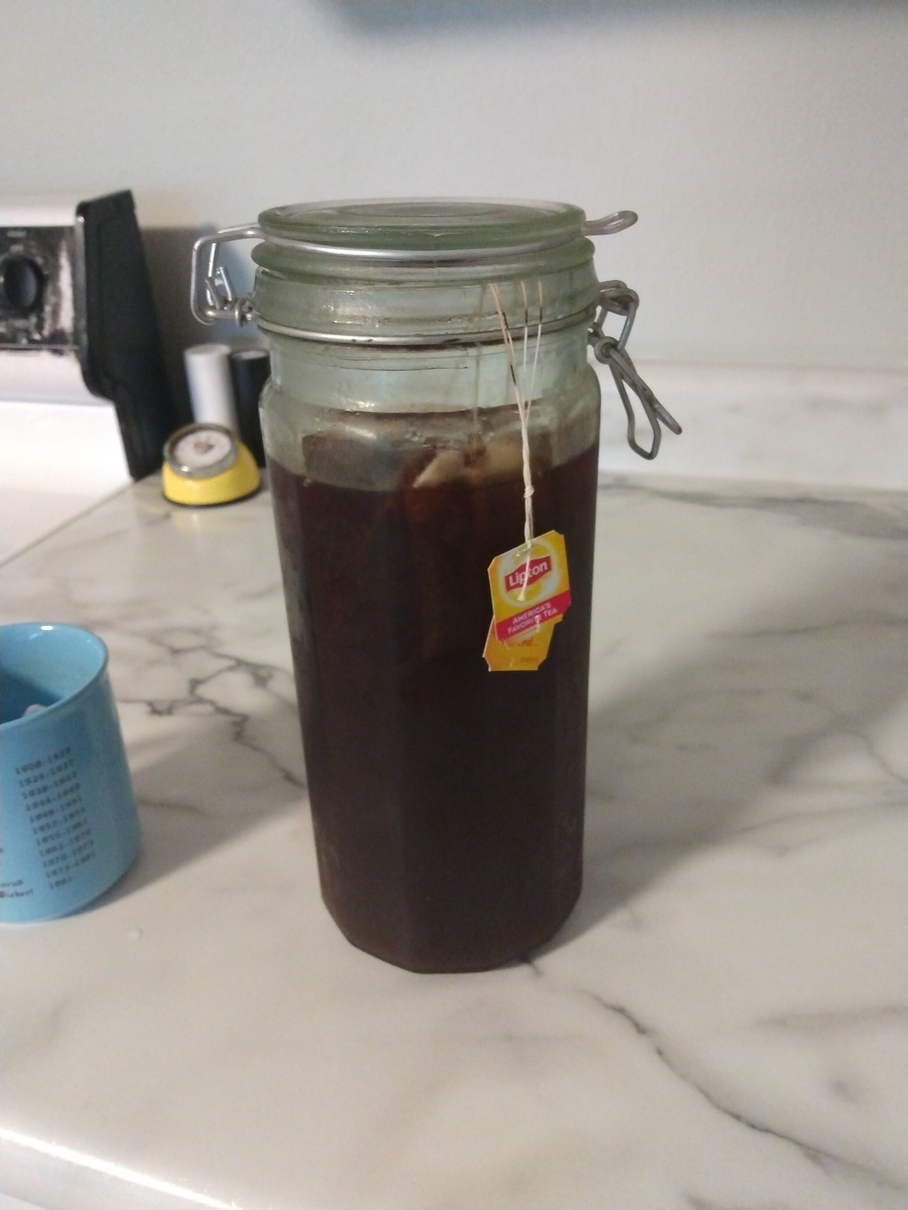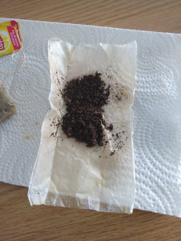 Make yourself a cup of tea. Grab a bag of your favorite flavor, and take some time to sit and enjoy it. Alternatively, use the bags from a batch of sun tea, iced tea, or kombucha.